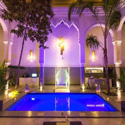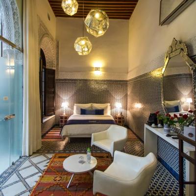 Riad Braya酒店位於Fes的一個歷史悠久的地區,設有天井的室內游泳池、一個休息區、一個配有意大利大理石和摩洛哥寶石瓷磚的庭院以及一個山景露台。