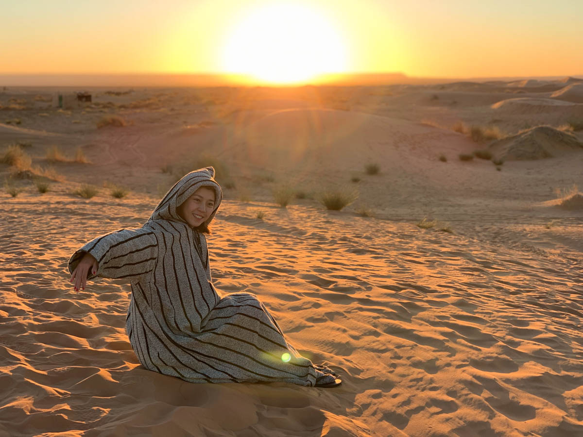 那隨著強風自然形成的幾何圖形是大地的藝術品,站在如畫布般的遼闊撒哈拉,予晞瞬間幻化成高傲的女王氣場,狠狠震攝住整片大漠。